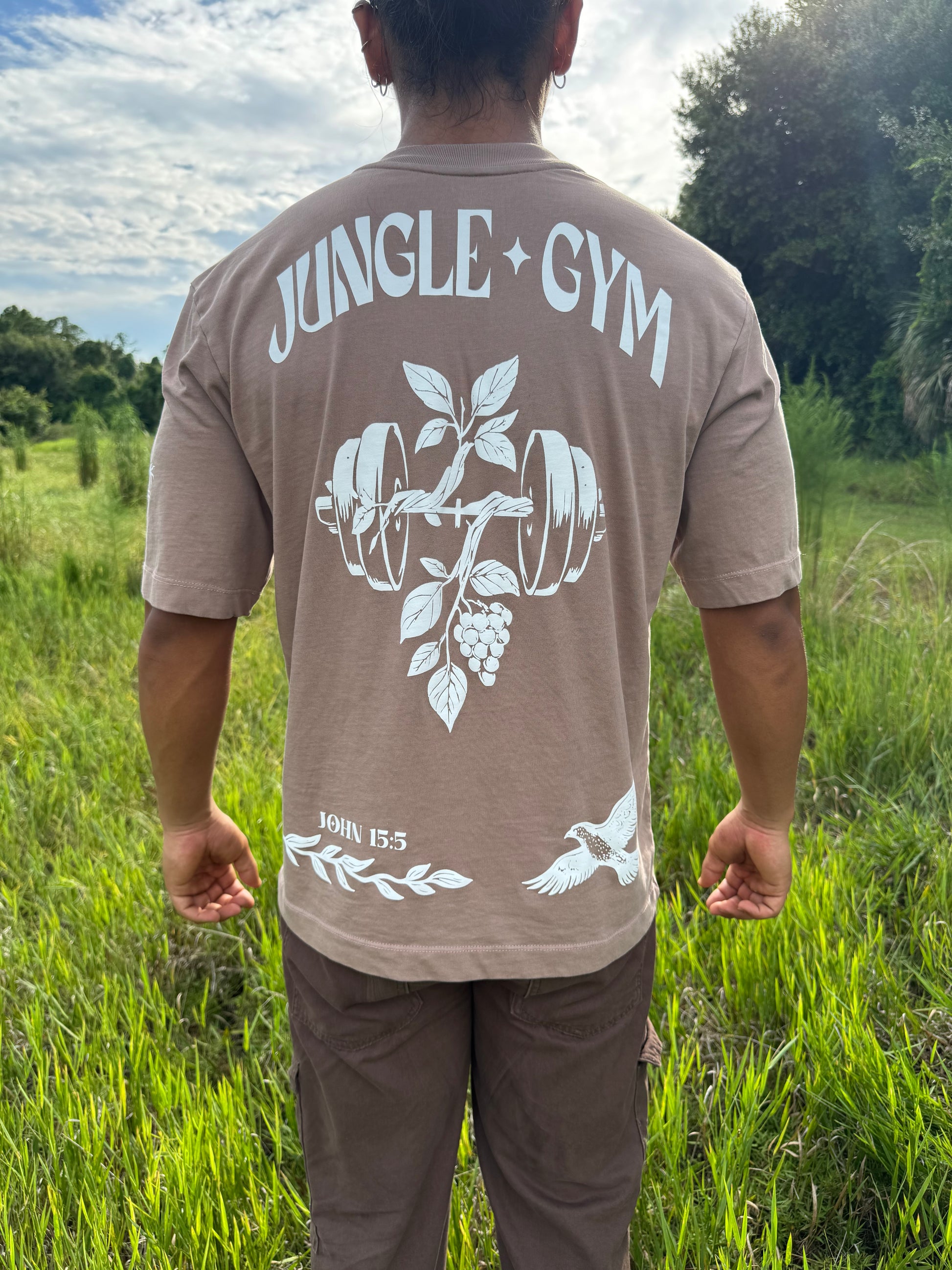 Artwork inspired by nature’s resilience; grapevines, dumbbells, and symbolic wildlife, this shirt reminds you that pressure doesn’t break you, it shapes you.
